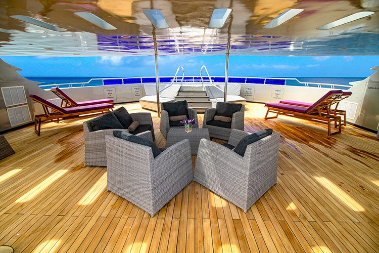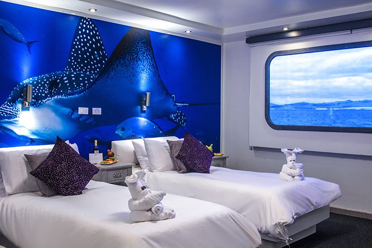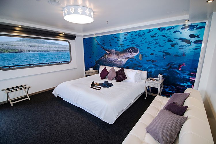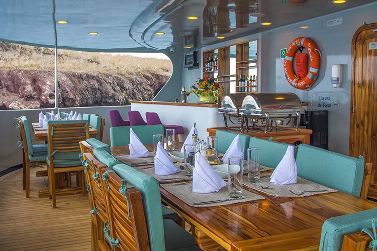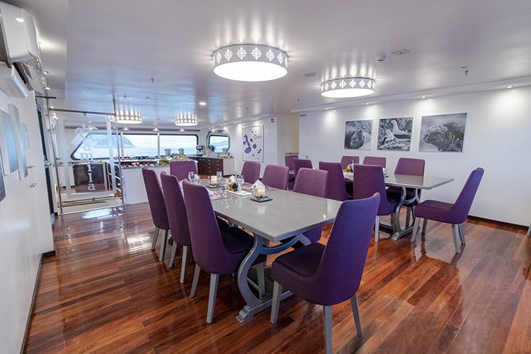 This cruise can comfortably accommodate 16 travelers who can choose 4, 5 or 8-day itineraries, visiting the most outstanding points in the islands, led by a certified bilingual naturalist guide and enjoying excellent service provided by crew members and a cruise director.