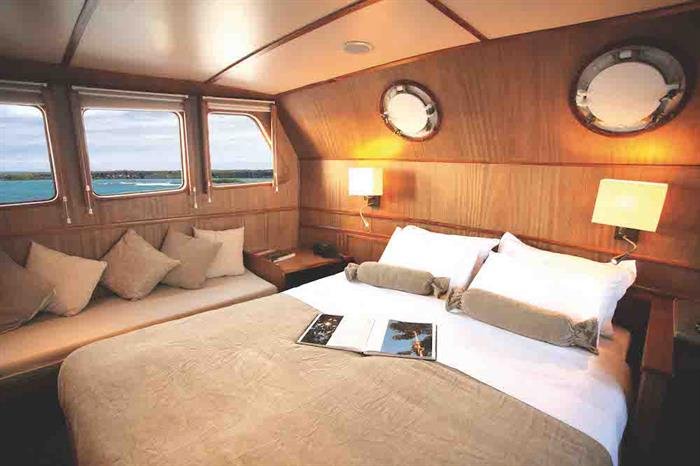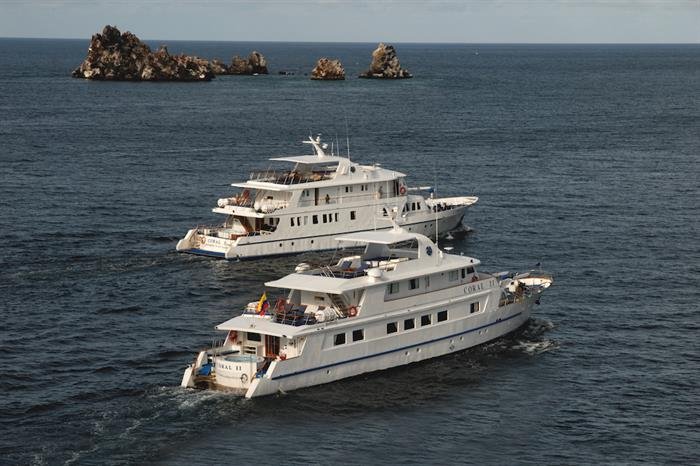 Coral II:The Coral 2, much like her sister ship Coral 1, is a spacious motor yacht. Built in Holland and handsomely designed, it gives your Galapagos tour an exclusive and unique touch. The entire interior is made of teak wood and fully carpeted. The Coral 2 has eleven cabins located on two decks (2 cabins with single upper and lower berths, 6 cabins with lower double and upper single berths, 2 superior cabins on the upper deck with double beds). Each cabin has its own full private bath and is handsomely decorated with wooden fixtures.