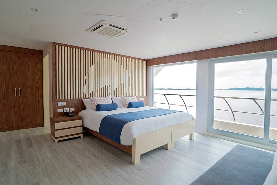 All Golden Suites on board the Galapagos Elite are spacious, comfortable and well – appointed: the perfect place to relax and recharge after a day spent exploring the islands. Each suite has an ocean view and an outdoor balcony, as well as rainforest – style showers in a private bathroom.