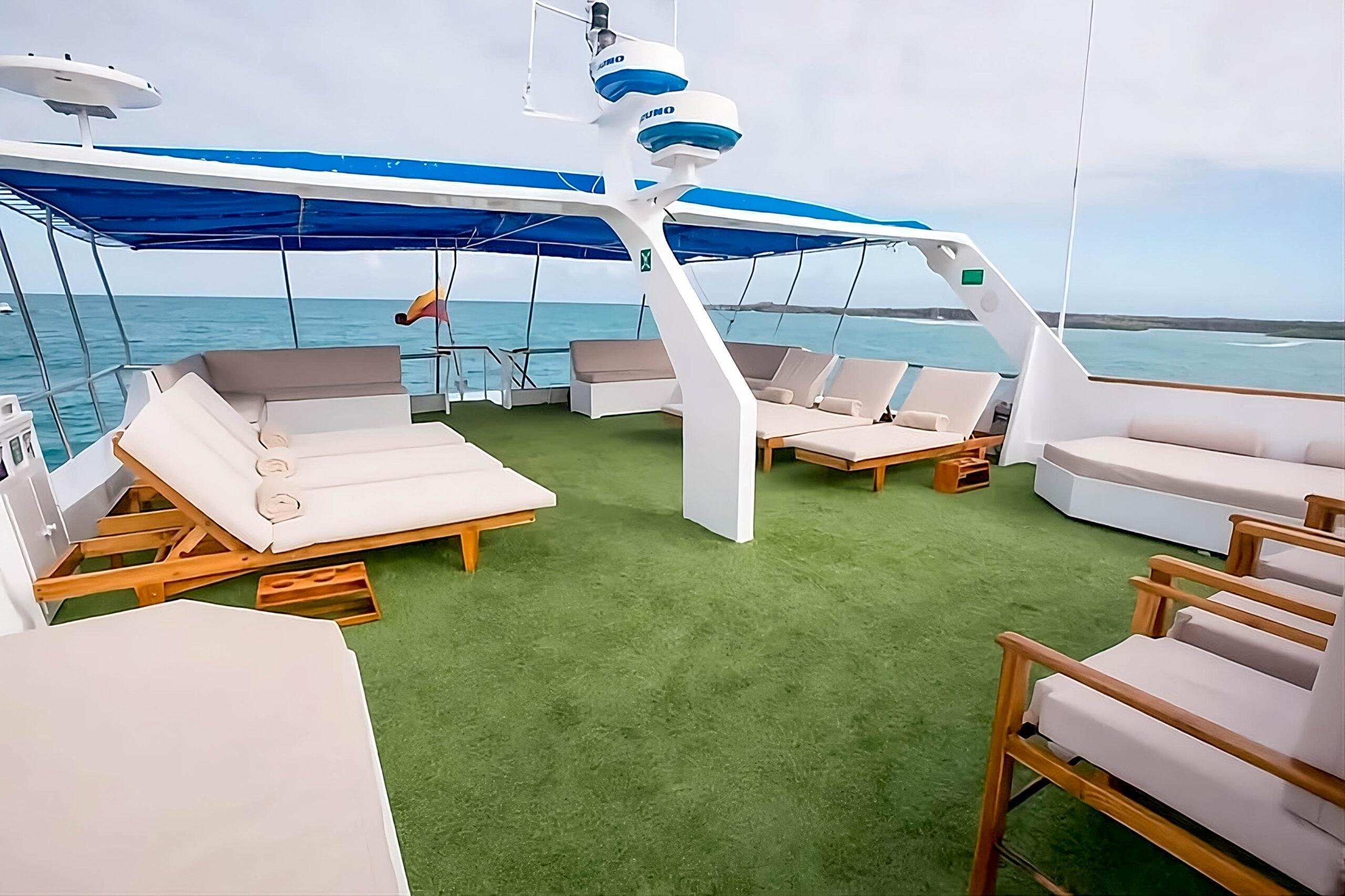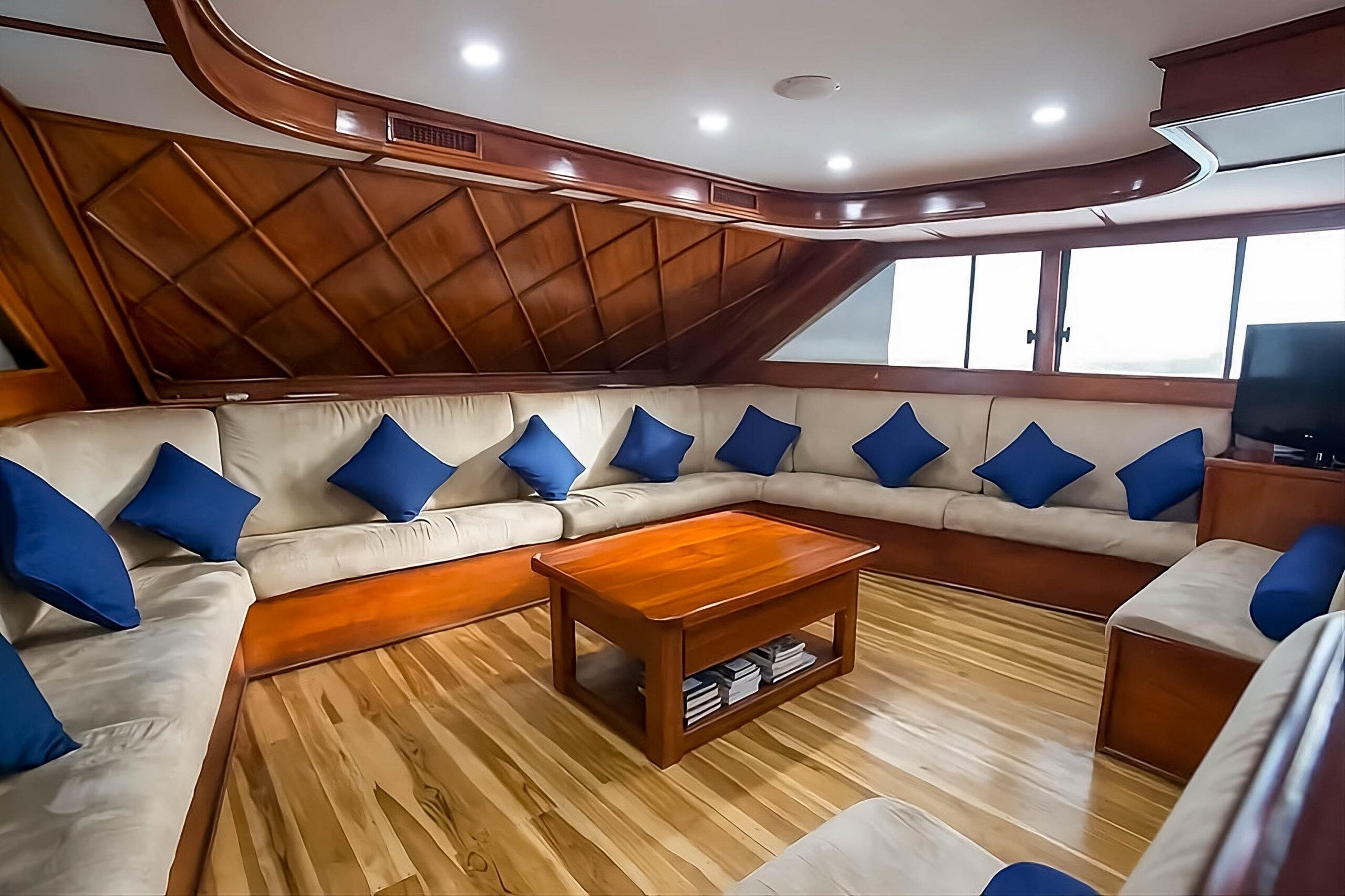 The Yacht Letty inviting social areas are the perfect spot to enjoy during ypur sailing time: spacious Lounge to share experiencies with your friends and fellow travelers, watch a video of the islands or read a good book; emjoy our ample Sun Deck to admire the beauty of the Archipelago while relaxing during the smooth sailing of the yacht, also the best location for stargazing at nigthttime; taste a wonderful variety of Ecuadorian dishs and international cruising in our comfortable Dinning area on the Main Deck and our al-fresco Dinning area in the Sun Deck