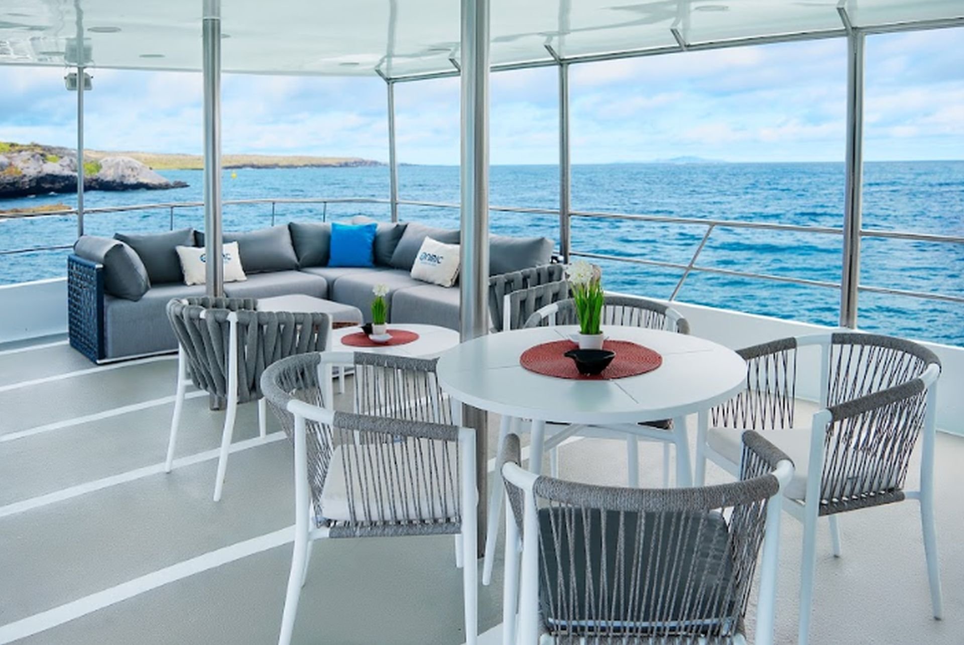 The renewed Estrella del Mar V.G. offers simple comfort and space on small ship cruises around the Galapagos. It’s a popular choice for those seeking a budget-friendly experience. There are eight cabins, four on the upper deck, and four on the lower deck, catering to a maximum of 16 guests per voyage. ESTRELLA DEL MAR has a professional crew, expert naturalist guides, open dining, and social areas.