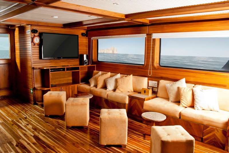 The Galaxy liveaboard is a first class yacht offering exciting cruises to the Galapagos Islands. She has the coveted 'Smart Voyager' certification, ensuring a commitment to reduce any negative impacts on the sensitive Galapagos environment. The crew and naturalist guides are trained to the highest standard, to offer a personalized service and unforgettable experience. Social areas include a spacious sun deck with loungers which is the perfect place to enjoy the stunning landscapes, outdoor dining room, as well as the indoor lounge, bar, library and dining room. An assortment of table games, videos and books are available for your enjoyment, and a variety of sodas, cocktails, and liquors are available for an extra cost at the bar.