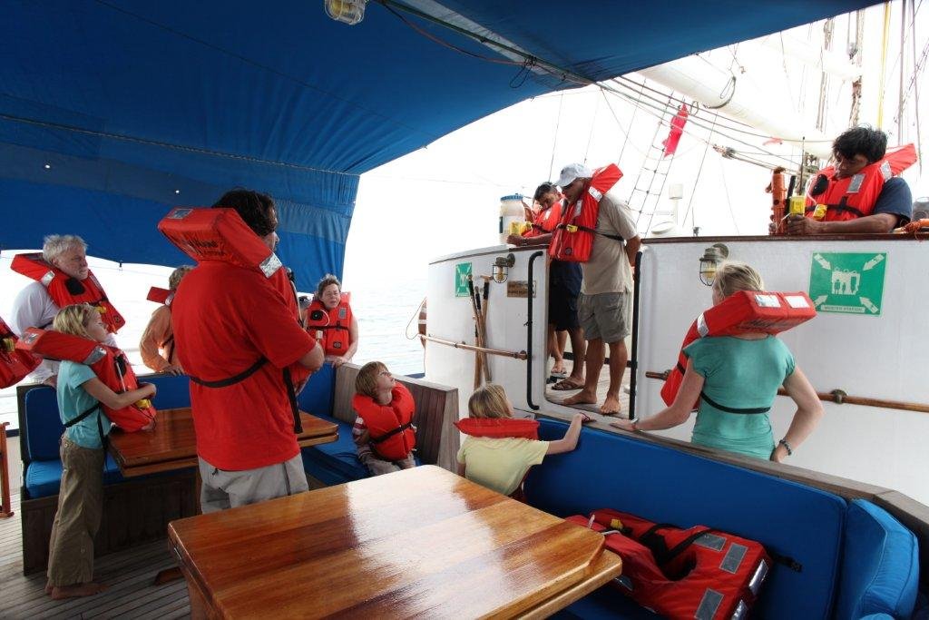 Captain, First mate, Engineers, Two sailors, Chef, Chef’s assistant, Naturalist guide. |