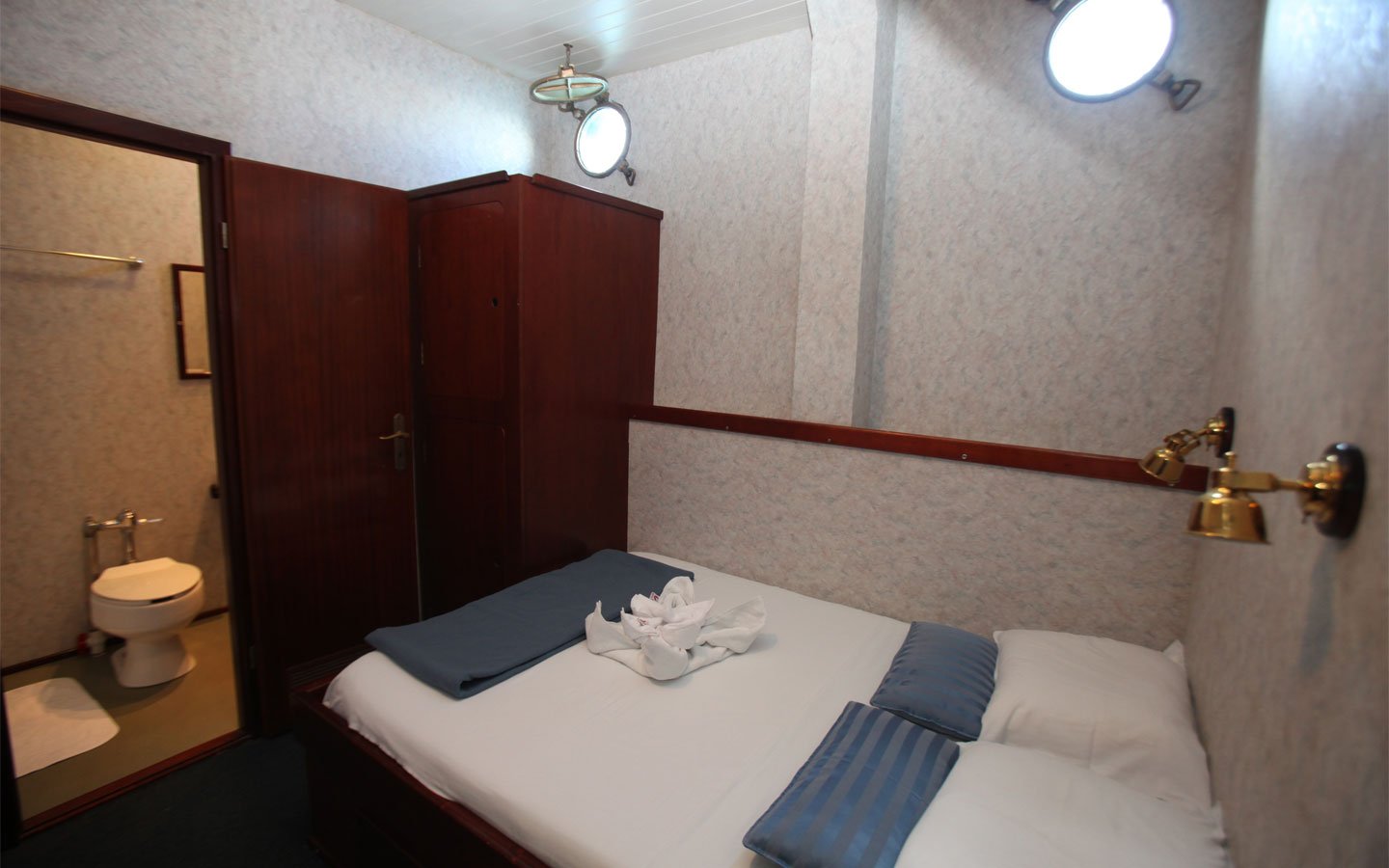 Catering to a maximum of 16 guests, the S/S Mary Anne Galapagos offers 6 double cabins and 6 single cabins. All cabins have private bathrooms with hot water and are designed with one double lower berth and a single upper berth, and two cabins have lower berths. Because the SS Mary Anne was built for 24 guests but caters to a maximum of 16, there is plenty of space to relax on board. Guests can choose the sun deck with open-air seating or the bridge to enjoy the fresh sea air. On the main deck is the dining room, kitchen, lounge with entertainment area and library. Meals can also be served al-fresco to enjoy the stunning Galapagos views and sunsets. Enjoy international and local Ecuadorian cuisine with freshly sourced ingredients.