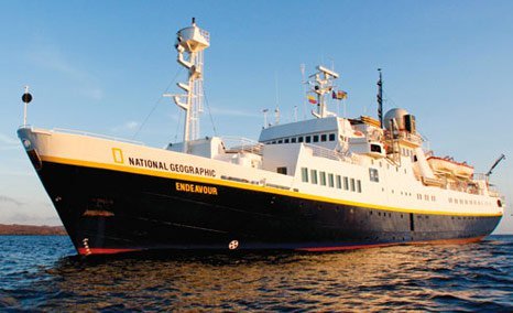 The National Geographic Endeavour is a classic expedition ship, fully stabilized to allow for smooth passage from one island to the next. This comfortable vessel accommodates 96 guests in 56 outside cabins and is ideally suited for Galápagos expeditions, carrying snorkeling gear, wet suits, kayaks, a fleet of Zodiacs, underwater cameras and a glass-bottom boat.