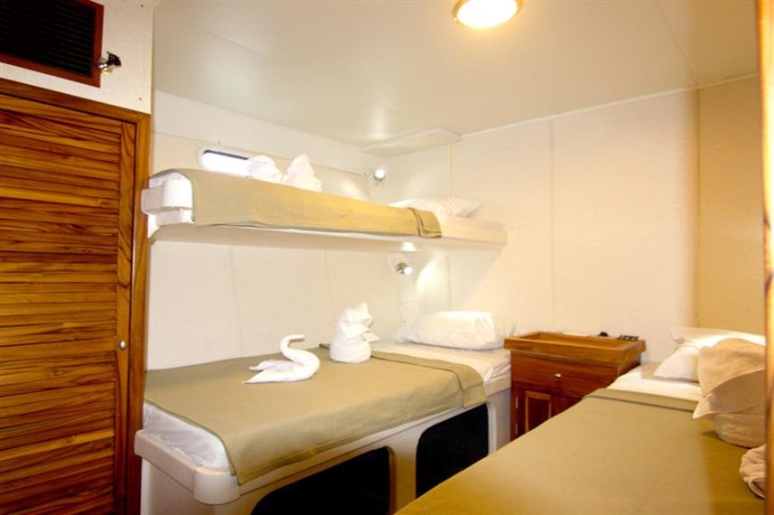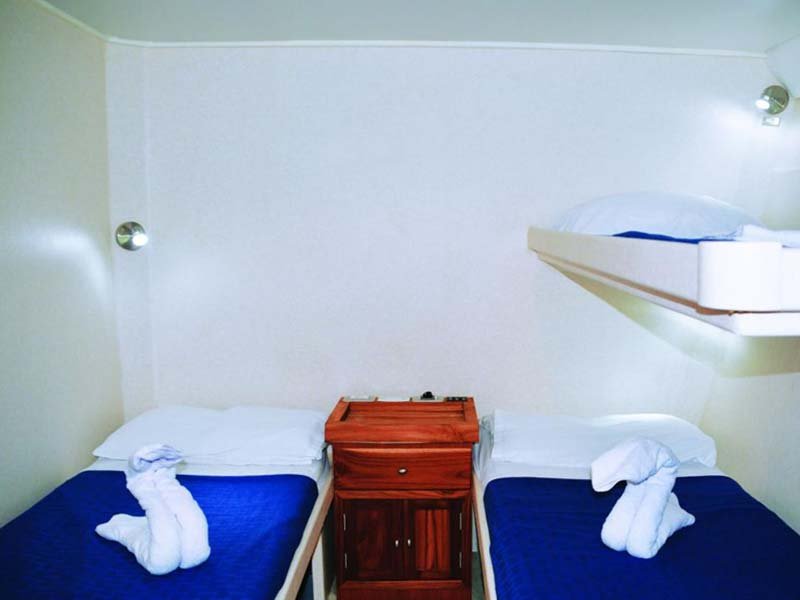 The 26m Nortada liveaboard presents a different kind of Galapagos dive liveaboard experience. With only 4 cabins on board and catering to a maximum of 10 guests, the Nortada offers divers a more intimate and personal experience. Each of the 4 cabins is air-conditioned with an en-suite bathroom, and has lockers and drawers for personal belongings. Relaxation areas include the air-conditioned lounge and dining area with entertainment system and open-air seating area and sun deck.