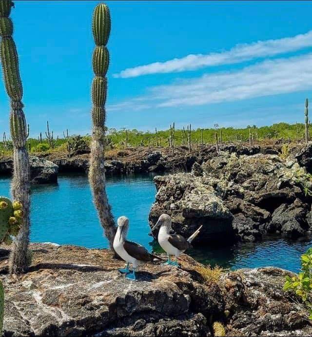 Galapagos penguins are frequently seen, and a small cave behind Pinnacle Rock houses a breeding colony. Seasonally, Bartolomé is the mating and nesting site for the green turtles. With herons, they make use of the gentler beaches. The Galápagos lava cacticolonize the new lava fields.