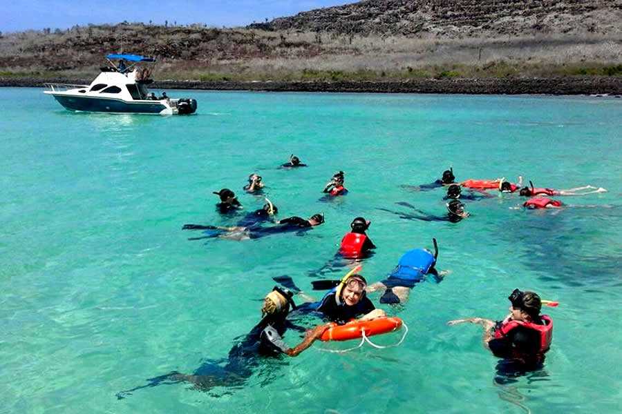 Am: Santa Cruz Island bay tour, includes snorkeling in La Loberia and hiking around the island. We will visit the Shark Channel (Tintoreras) and the Lovers Channel (Canal Del Amor) then we will walk to the cristal clear waters of Las Grietas.