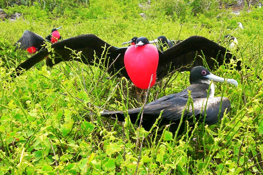 Hybrid iguana, Land iguanas, Marine iguanas, Sea lions, Lava lizards, Swallow-tailed gulls, Lava gulls, Shearwaters, Marine iguanas, Great & Magnificent frigate birds, Blue footed boobies, Brown noddie terns, Brown pelicans, White tip sharks, Sting rays, Sea turtles.