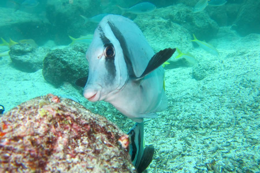 Sea lions,Land iguanas, Swallow-tailed gulls, Lava gulls, Migratory shore birds,Marine iguanas, Great & Magnificent frigate birds, Blue footed boobies, Brown noddie terns, Brown pelicans, Flamingos, White tip sharks, Sting rays, Sea turtles and various migratory shore birds.