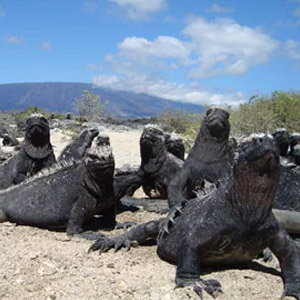Highlights: Land iguanas (the biggest in Galapagos), hawks, coral reef, giant tortoises; snorkeling: turtles, rays, tropical fish