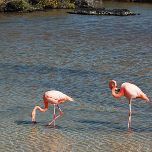 Located on the north shore of Santa Cruz, Las Bachas is a swimming beach. One of the few remnants of the U.S. World War II presence in the Galapagos, a floating pier, can be seen here. You may see flamingos, Sally Lightfoot crabs, hermit crabs, black necked stilts, and whimbrels. Sea turtles also nest off the beach. View more about Santa Cruz Island