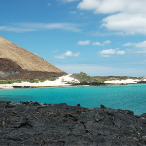 Fast Facts: Although its official name is "Santiago", the island also goes by James (English), Olmedo, Gil, and York.; Animals: fur seal lions, flamingos, Galapagos hawks; Area: 226 sq. mi; Highest Point: 2,975 ft